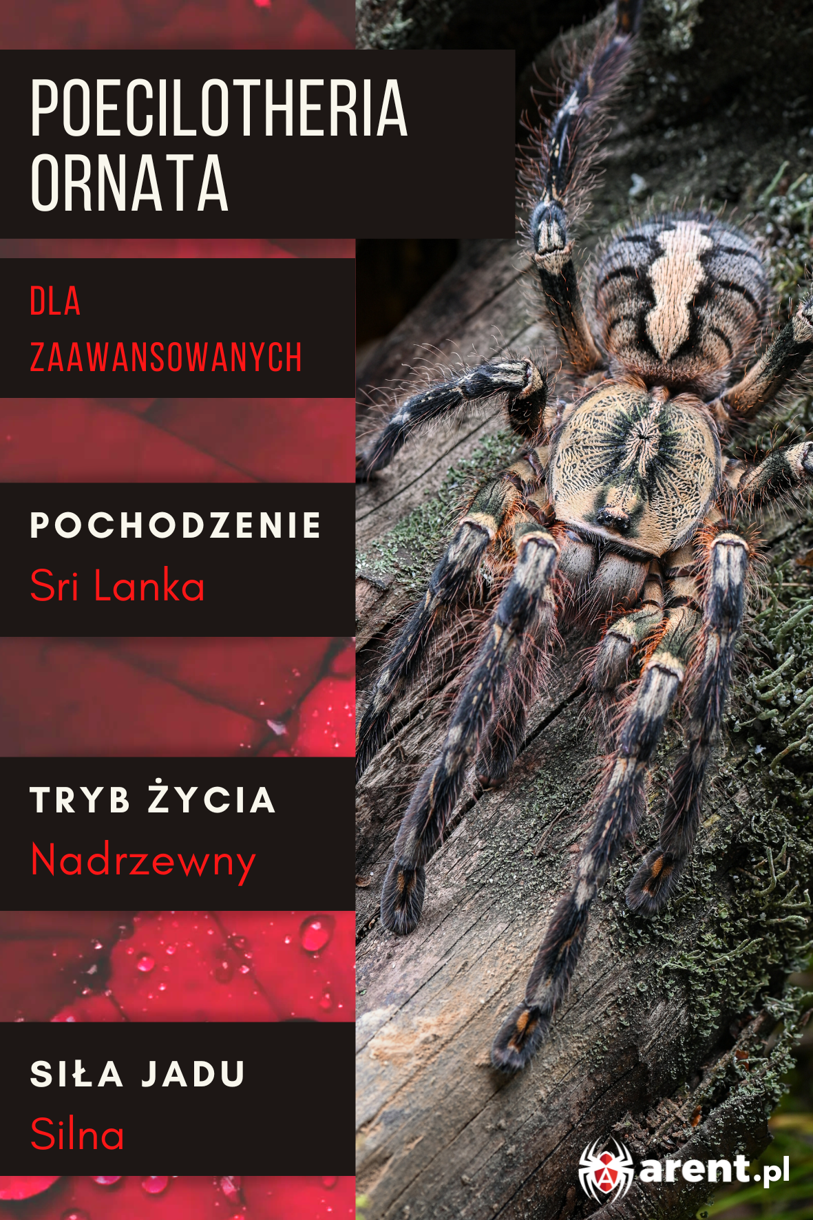 Poecilotheria ornata to ptasznik nadrzewny, jeden z większych przedstawicieli rodzaju. Został opisany w 1899 roku przez Pococka. Występuje w Azji. Ptasznik dorasta do 8 cm długości ciała (dc) i aż 22 cm rozpiętości odnóży!
